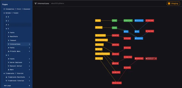 Για να το πετύχουμε, αξιοποιούμε συγκεκριμένο εργαλείο, το οποίο επιτρέπει scripting σε YAML για storytelling, cinematics, dialogues και quest logic. Έτσι μετατρέπουμε πολύπλοκα σενάρια σε καθαρά, επεκτάσιμα και performative structures.